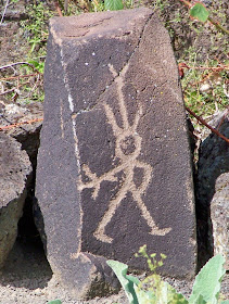 Chipped into 5-foot-long rocks, the petroglyphs are easily visible. They depict deer, mountain sheep and the humans who hunt them. They show thunderbirds, owls, fish and a mysterious creature with long flowing tentacles.